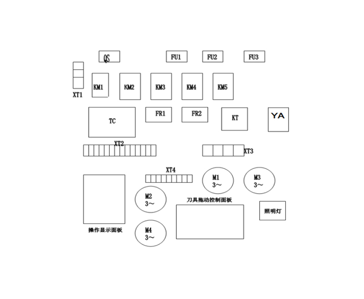 按动按钮SB6,接触器KM5线圈通电,主轴箱和立柱的夹紧装置夹紧,夹紧后压下位置开关SQ4,指示灯HL2做夹紧指示,松开按钮SB6,接触器KM5线圈通电,主轴箱和立柱的夹紧状态保持,在HL2的夹紧指示灯状态下,可以进行孔加工(此时不能手动移动)。